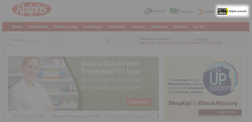 At the top of the page, click on the Ralph’s Rewards icon. |
