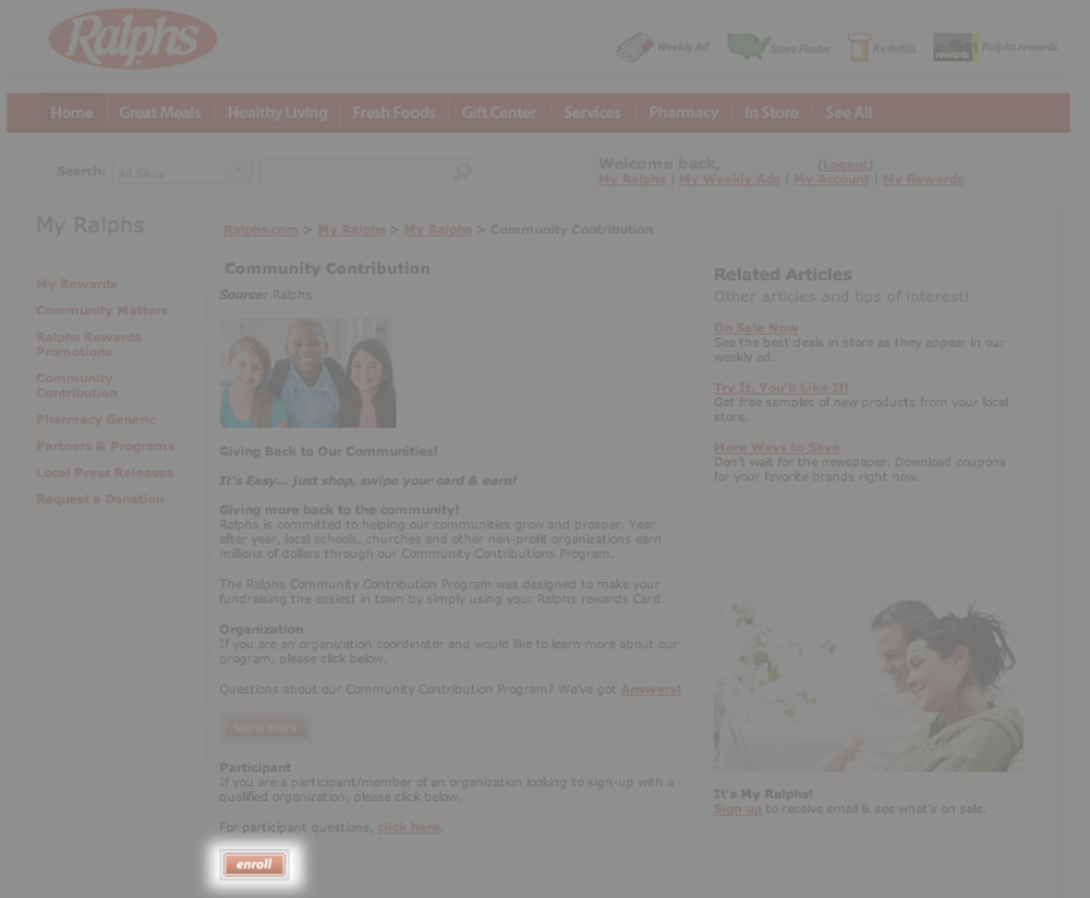 Want to register in-store? Print this form and have the cashier follow the instructions. Ralphs Community Contribution Program